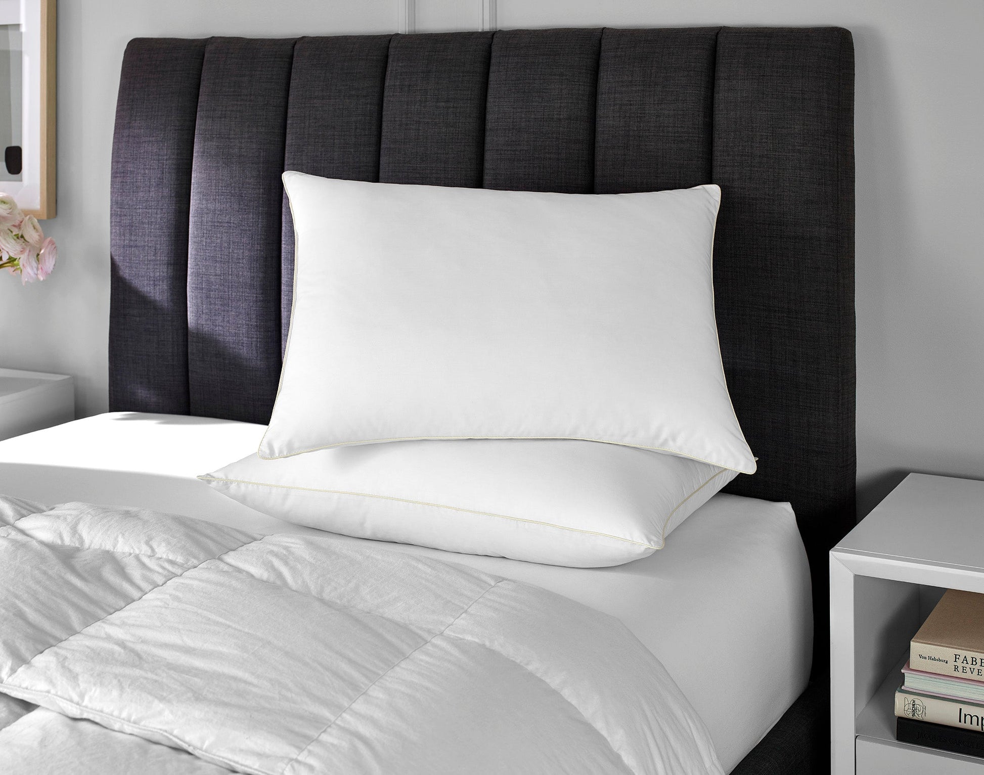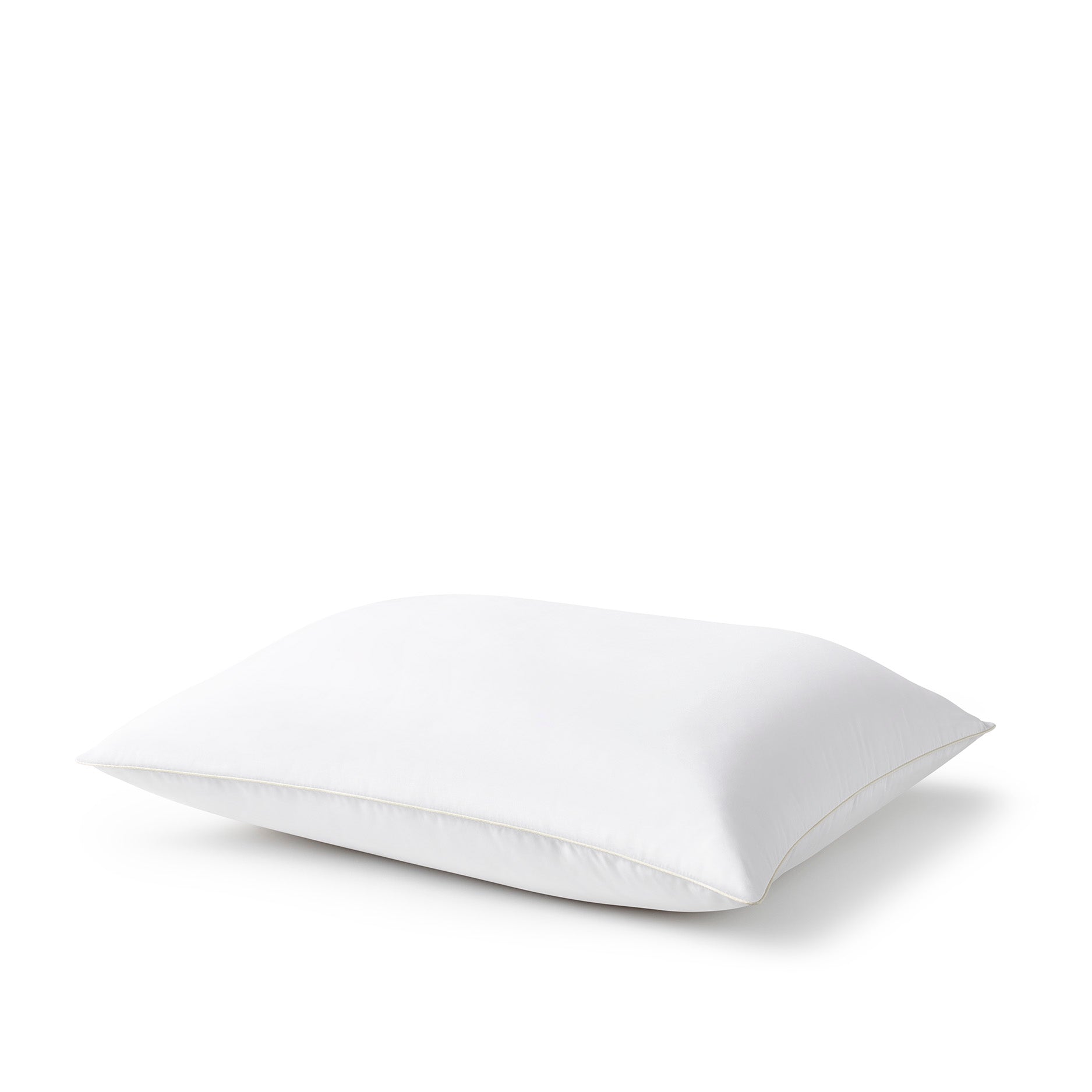 Premium White Sateen exterior enhanced with elegant satin piping encases this precision-engineered pillow. Offering a balanced medium-firm density with substantial loft, it utilizes advanced performance gel fiber technology that mimics down's properties without allergens. The specialized fill composition provides exceptional structural integrity while maintaining breathability, allowing for customized contouring and shape retention through strategic manipulation.